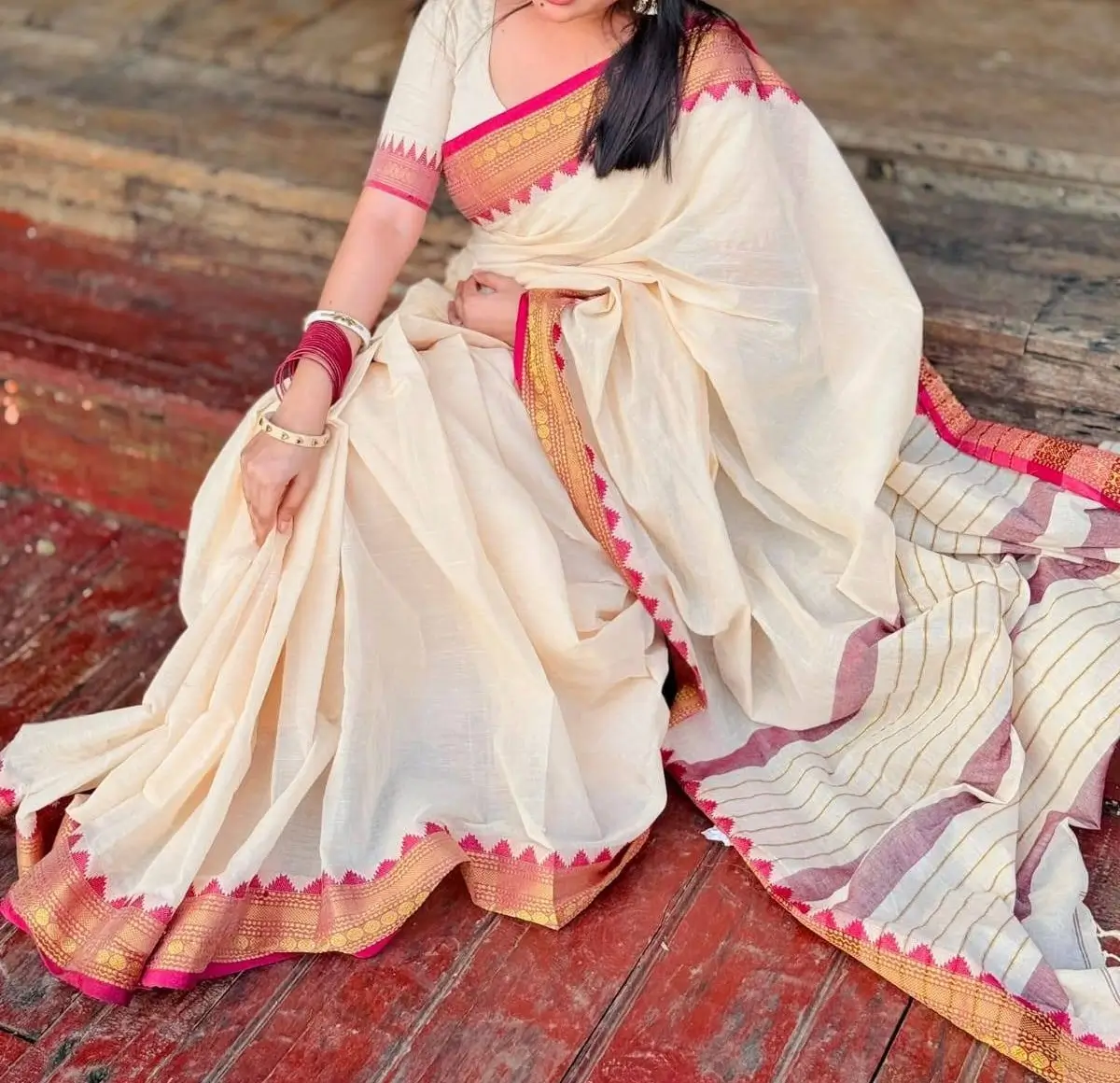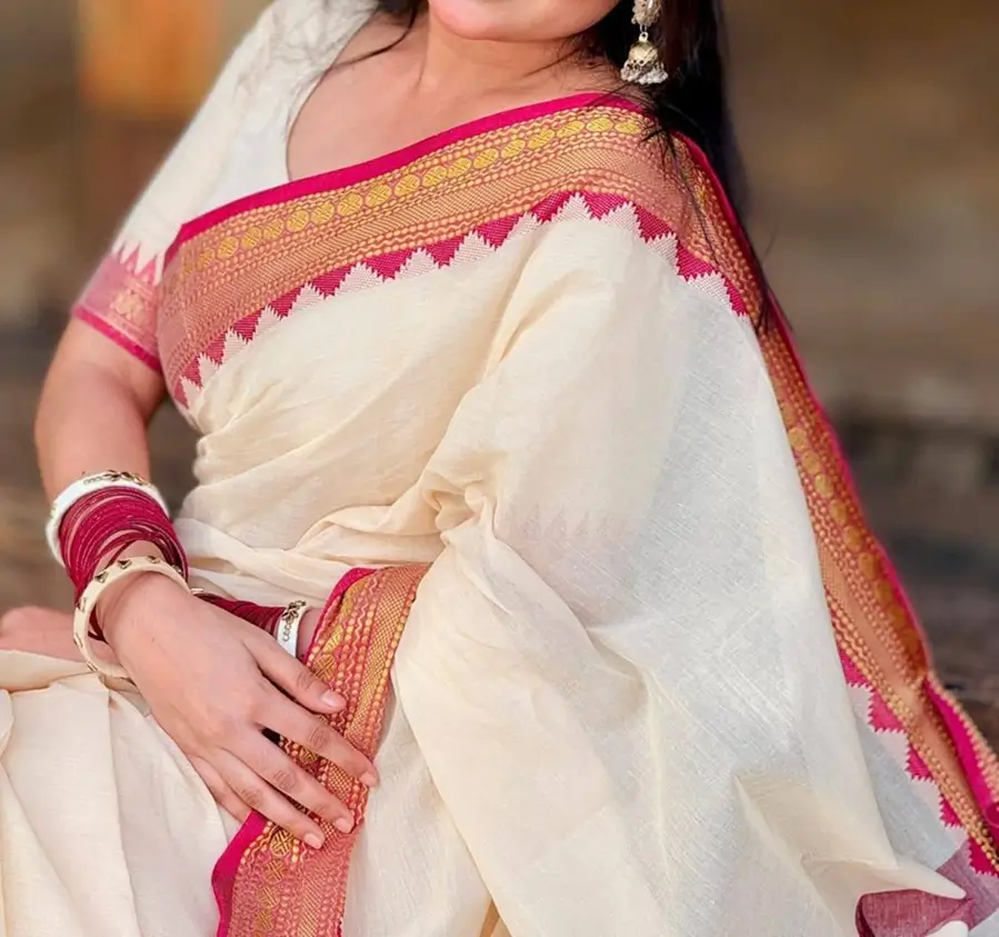 ডিজাইন | আকর্ষণীয় ডিজাইনে সূতি ফুল পাইড় শাড়ি |